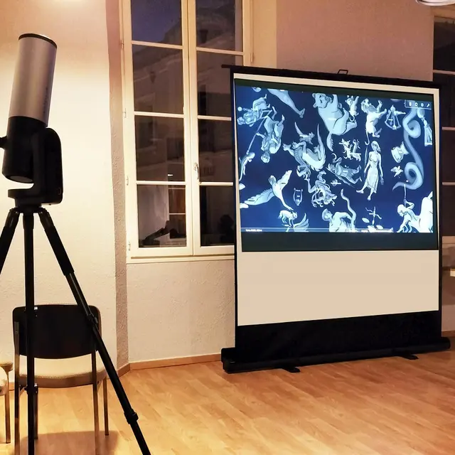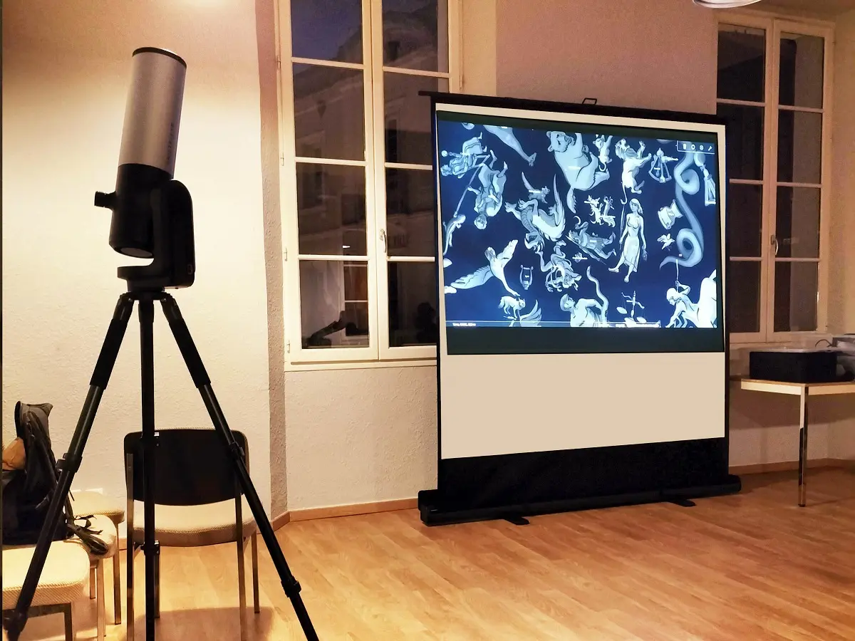 En cas de conditions météorologiques défavorables, balade céleste commentée et observation du ciel en intérieur à l’aide d’un logiciel de simulation astronomique et de séquences d’observation au télescope préalablement enregistrées.