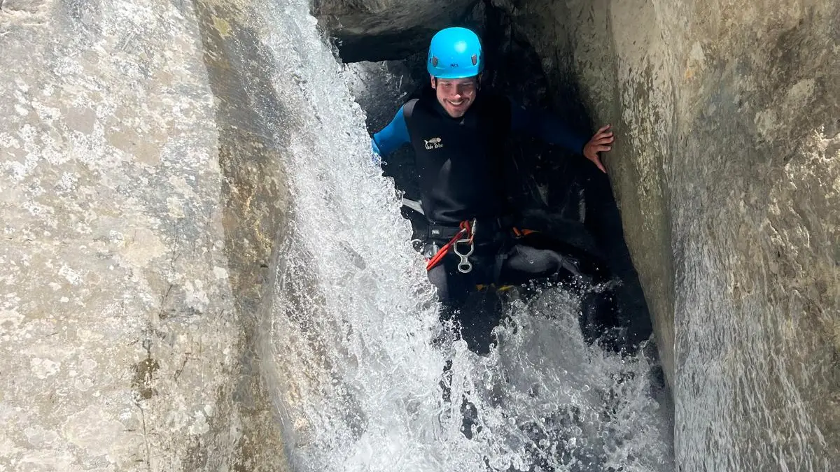 La descente de canyon est un sport de pleine nature qui consiste à progresser dans le lit d'un torrent principalement à pied en alternant saut et toboggans mais également à la nage ou en utilisant les techniques de progression sur corde ( rappel )