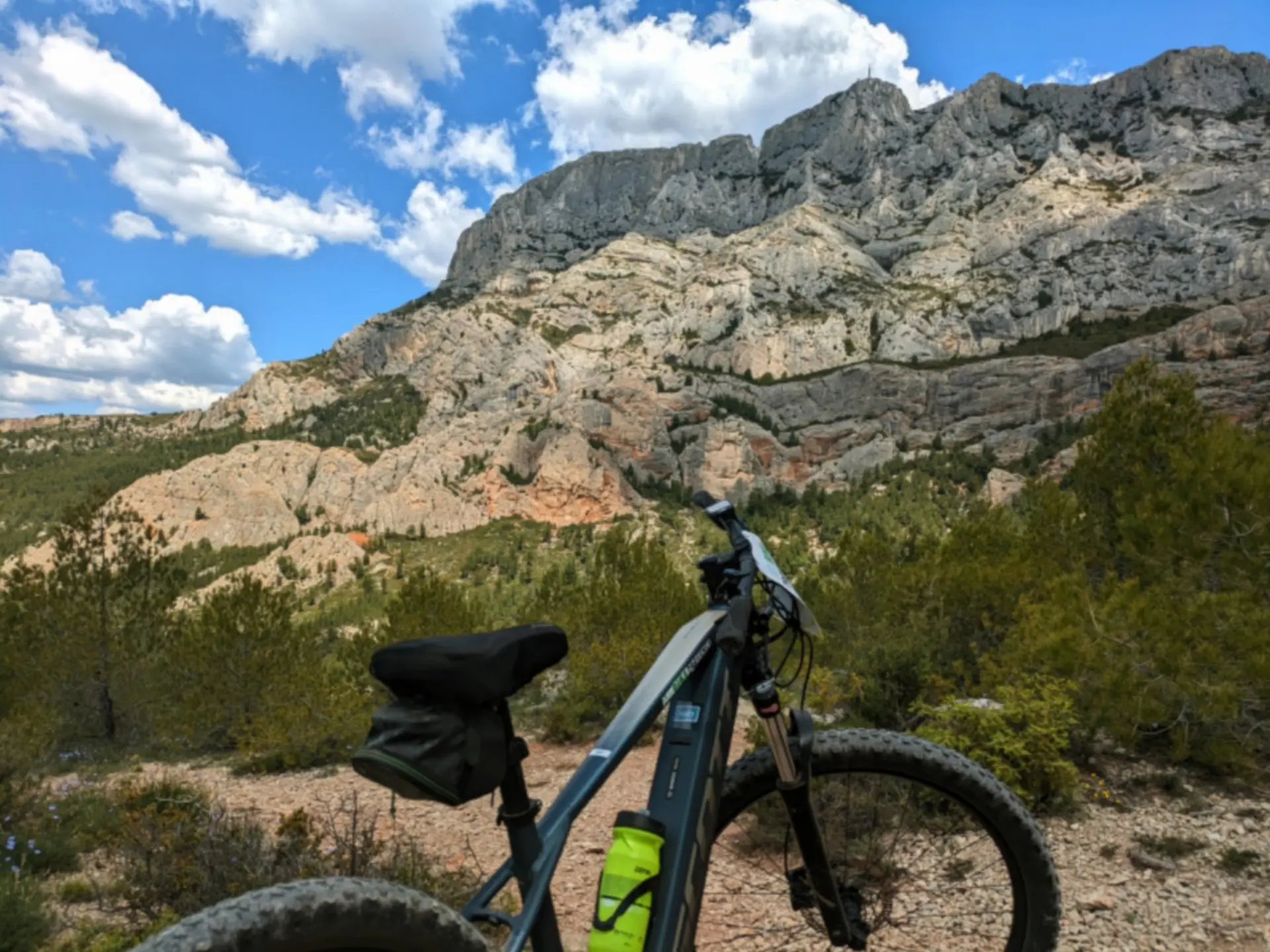 Admirez la montagne Sainte-Victoire, muse de Cezanne, lors d’une balade en vélo électrique à travers les paysages inspirants d’Aix-en-Provence.