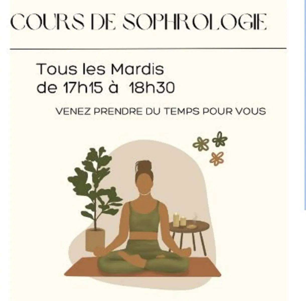 Vous souhaitez prendre un temps pour vous, Vous reconnectez à votre corps, votre mental, votre respiration Vous souhaitez éveiller vos capacités et vos ressources pour gérer aux mieux vos émotions.