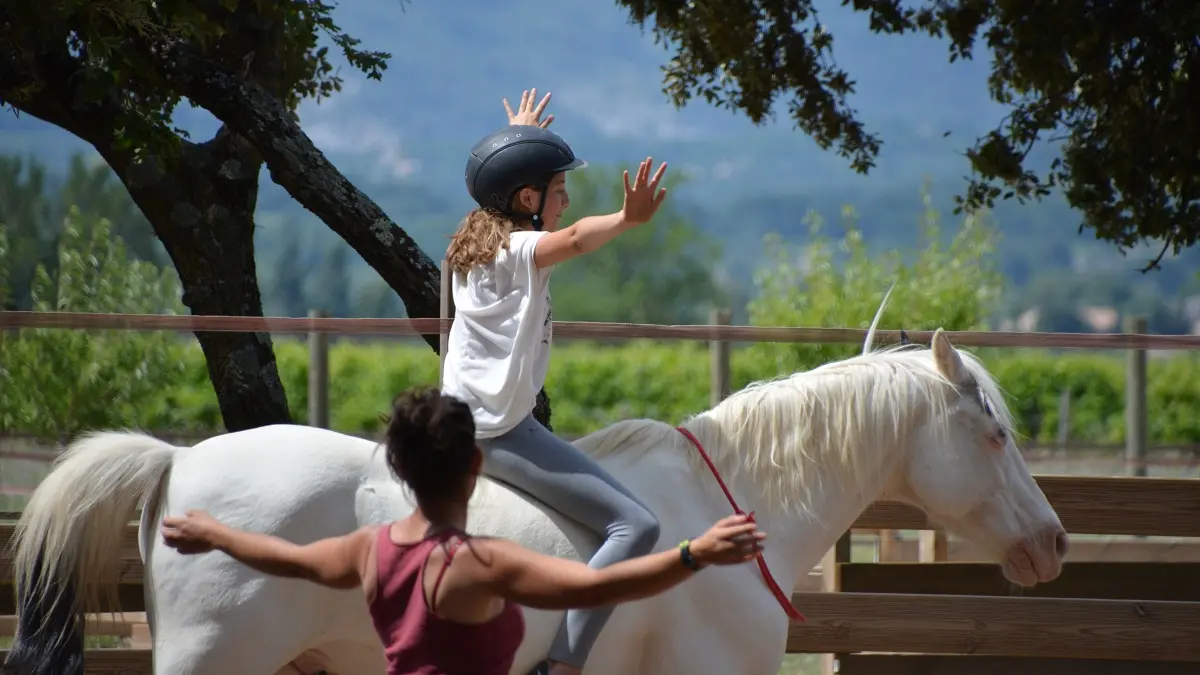 Nos animateurs s’adaptent à vos besoins, de la détente à des activités plus dynamiques, en monte naturelle ou simplement en compagnie du cheval : exercices d’équilibres, de touchers, balades, monte à cru, travail en liberté, etc. Prestations ouvertes à tous, organisées au sein du parc arboré de la ferme écologique du Lucky Horse à Mazan, avec ses étangs, ses chevaux et autres animaux et ses cultures provençales traditionnelles.