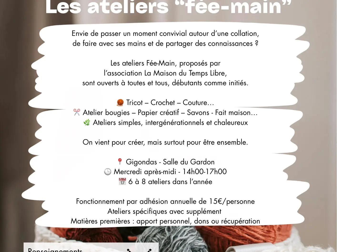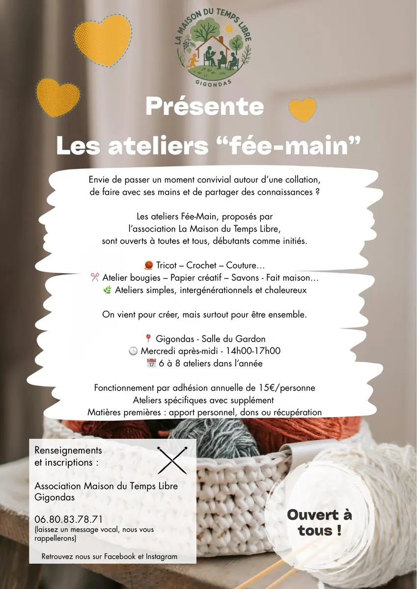 Les ateliers Fée-Main , proposés par l'association La maison du Temps Libre, sont ouvert à toutes et tous, débutant comme initiés. On vient créer mais surtout pour être ensemble.