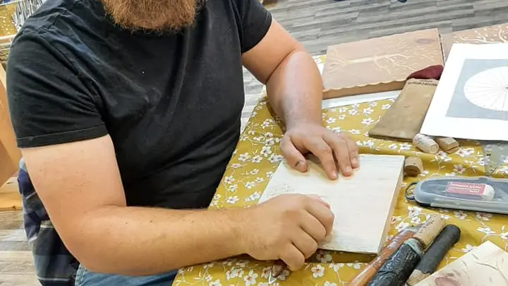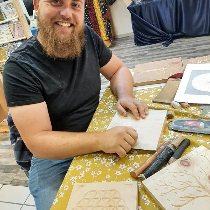 Autour d’un bon café, Cédric te plongera dans son univers fantastique en t’expliquant le monde du bois et de la sculpture. Ensemble vous créerez une pièce unique (un dessous de verre): tu commenceras par le traçage de la rosace qui t’amènera à la sculpture au couteau afin de découvrir le bois sous un angle nouveau !