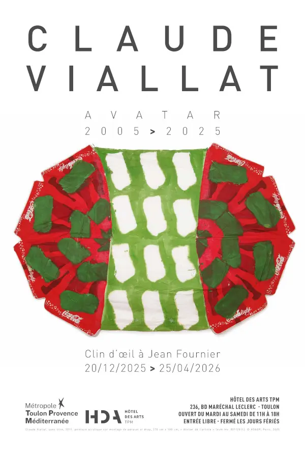 Travailler sur du tissu brut et répéter une forme simple fait pleinement écho au mouvement Supports/Surfaces et à l’œuvre de Claude Viallat, qui utilise des supports libres, non tendus avec un motif unique répété comme une empreinte colorée.