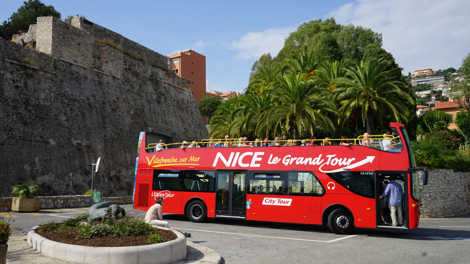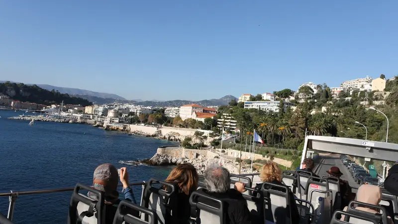 Visite de Nice et Villefranche-sur-Mer depuis l'impériale du bus à étage.