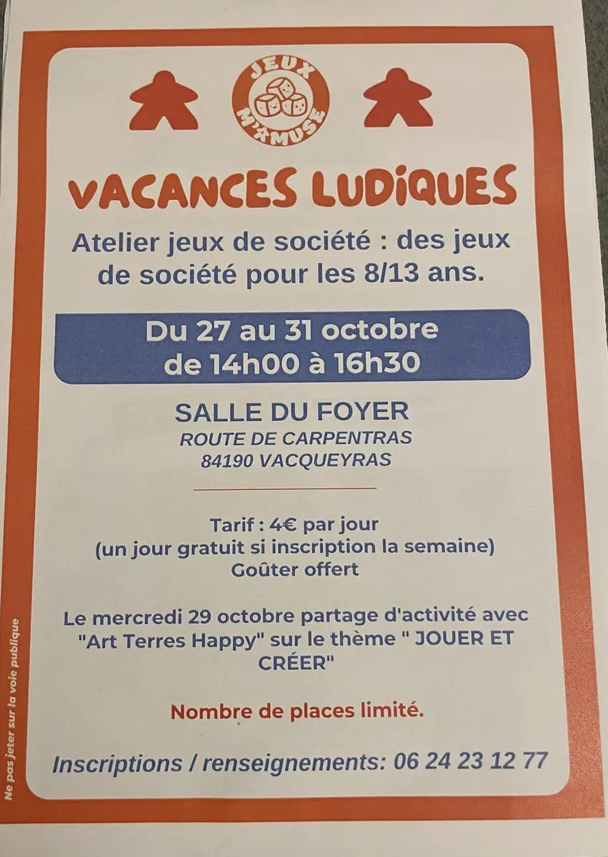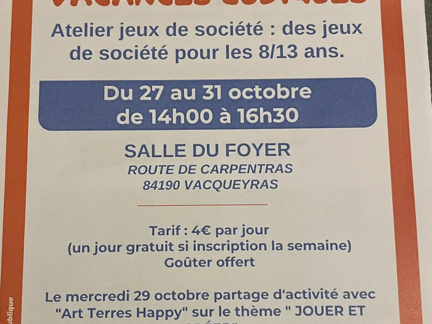 L’association Jeux M’amuse propose des ateliers jeux de société pour les 8/13 ans pour des vacances ludiques. De quoi s'amuser en toute convivialité, et en plus, le goûter est offert ! Attention, le nombre de places est limité.