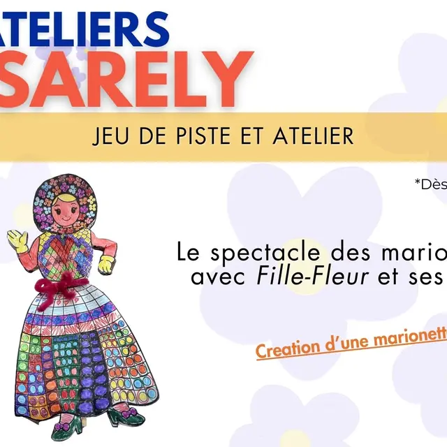 Après un jeu de piste de printemps dans le parc de la Fondation, les enfants réalisent une marionnette inspirée des personnages poétiques imaginés par Victor Vasarely : la Fille-Fleur, l’Arlequin, les zèbres et le chat.