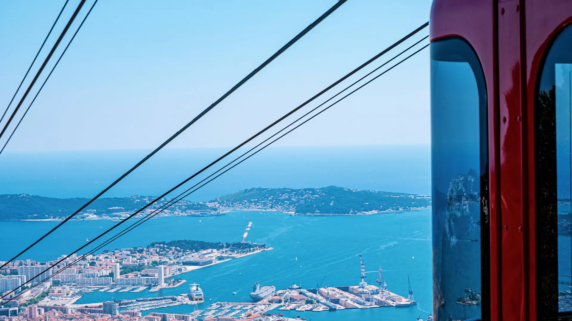 Unique sur le littoral méditerranéen, le téléphérique et sa jolie cabine rouge vous entraîne en 6 minutes au sommet de la plus célèbre des montagnes toulonnaises. À son bord, vous contemplez des panoramas sur les collines alentours, la ville, la rade, les îles et la Méditerranée.