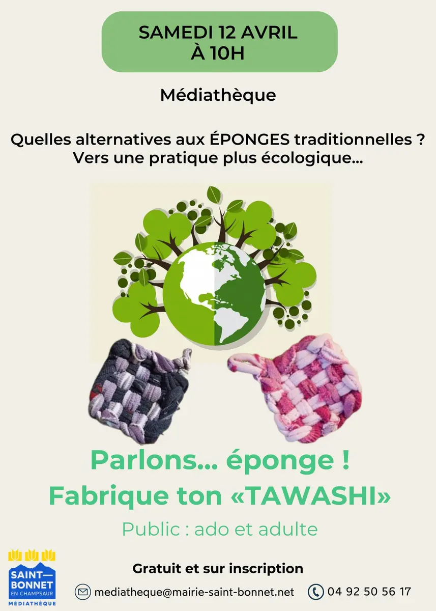 Atelier d'initiation à la fabrication d'une éponge. Public ado-adulte, sur inscription.