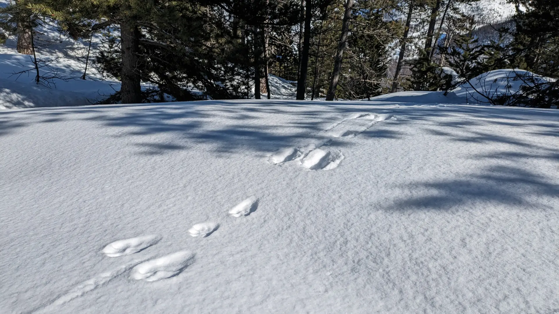 Observation de la vie sauvage à la longue vue, dans le respect des zones de quiétude de la faune en hiver, recherche des traces et indices de vie dans la neige.