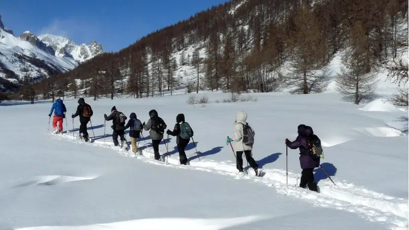 Découverte en raquette d'un territoire d'exception avec les plus beaux points de vue de la vallée de Serre-Chevalier, du col du Lautaret jusqu'à à la confluence de la Guisane et de la Durance.