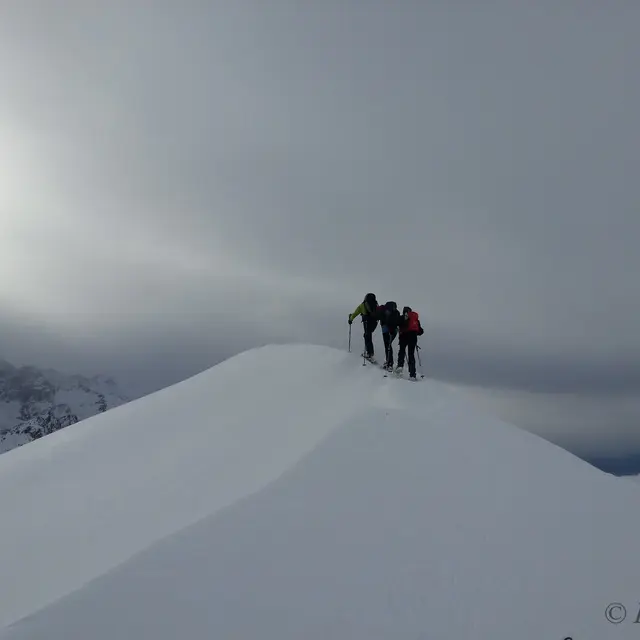 Raquettes à neige, bâtons, ARVA, sondes et pelles sont fournis.