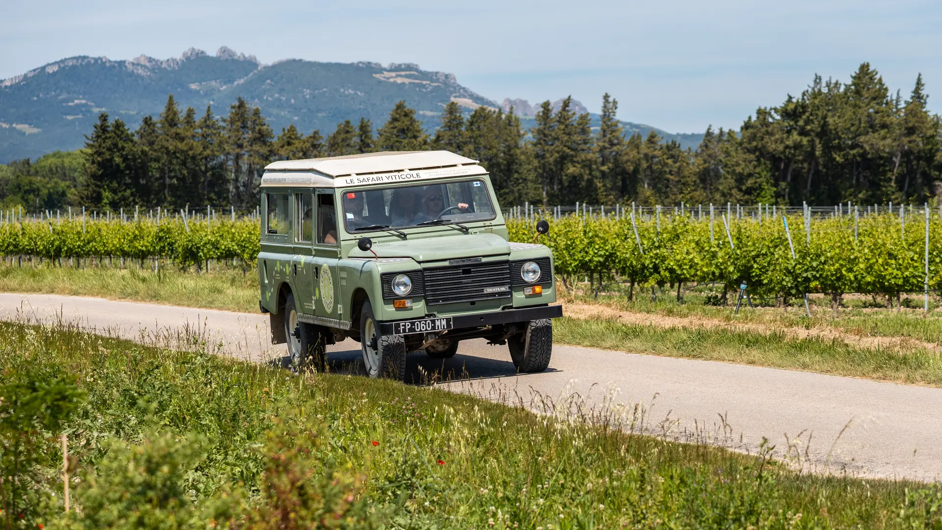 Idéalement situé entre les Dentelles de Montmirail et le Mont Ventoux, partez à la découverte de notre vignoble et des paysages vauclusiens… à bord d'un Land Rover 9 places.