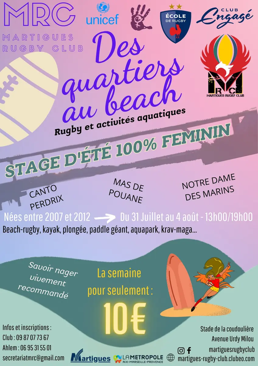 Un stage proposé par le Rugby Club de Martigues 100% féminin ! Les filles licenciées ou non, et nées entre 2007 et 2012 pourront rejoindre ce stage multi-activités.