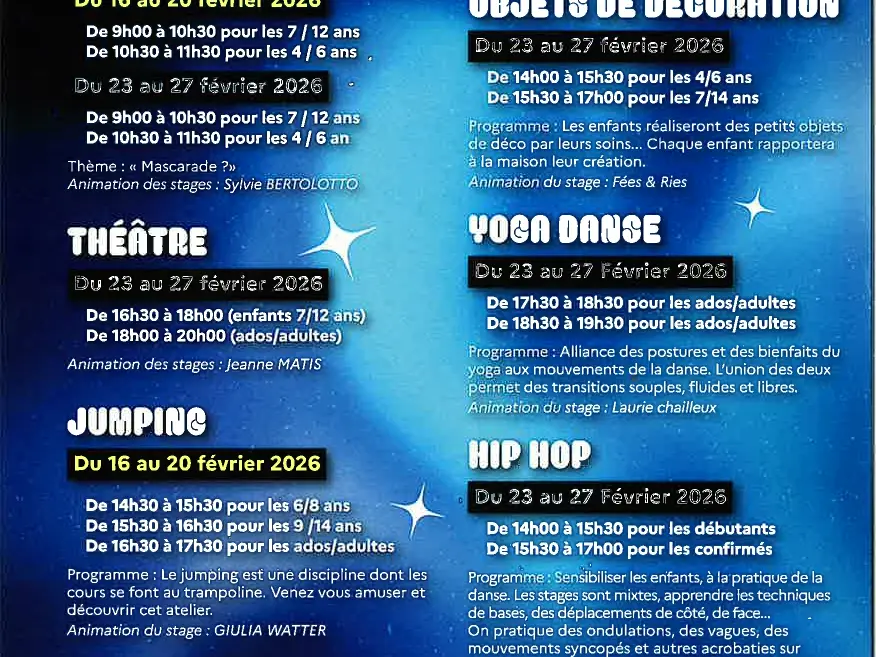 Stages vacances de Février