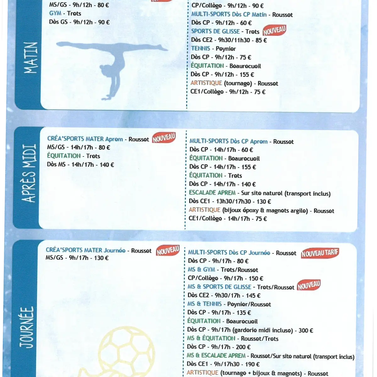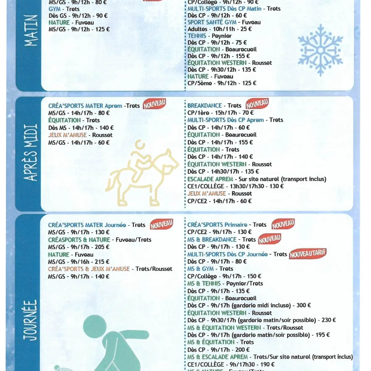 Nature (MS/GS) : 9h/12h - 125€ la semaine
