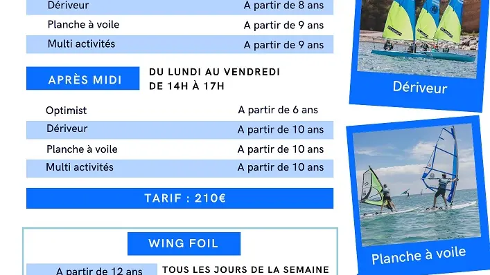 Stages multi-activités, optimist, dériveurs, planche à voile. Sur inscription
