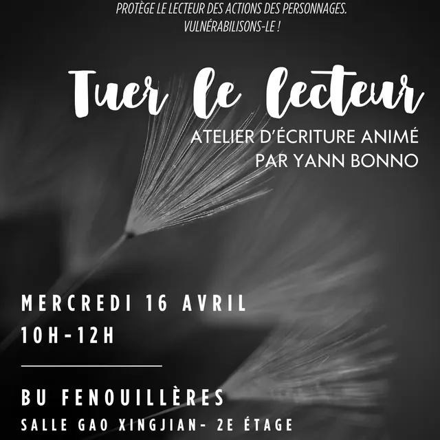 Participez à l'atelier d'écriture "Tuer le lecteur", animé par Yann Bonno.