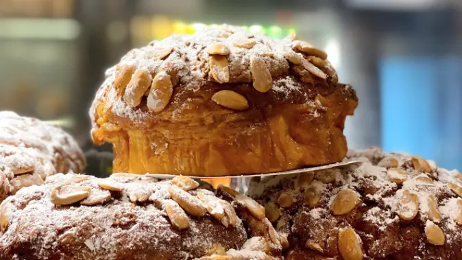 Produit signature de cette patisserie, le Craquelin est une brioche façonnée dans le sucre recouverte de crème et d'amandes.