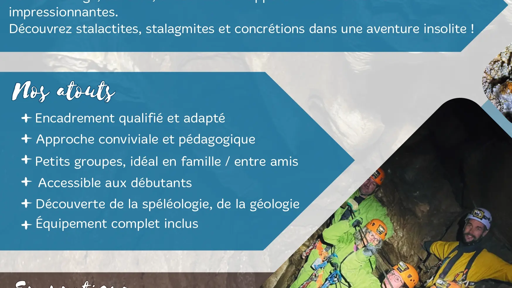 Spéléologie découverte - Grotte du Puits des Bans avec Ecrins Spéléo CanyonExplorez le Puits des Bans, grotte spectaculaire du Dévoluy. Traversez un lac en canot, découvrez vastes galeries et salles impressionnantes. Parcours modulable dès 10 ans,...