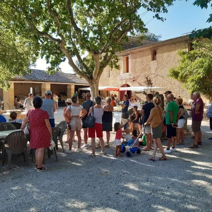 Dégustation des différentes huiles et vente des produits du moulin : huiles, olives cassées, tapenades, objets artisanaux (poterie, bois travaillé).