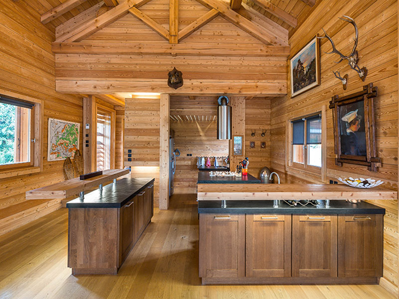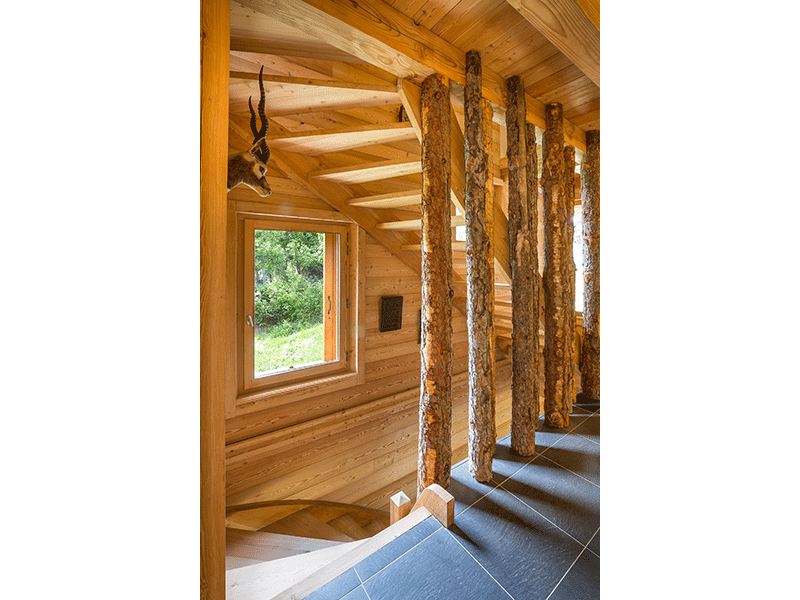 Les espaces de vie et les volumes permettent de profiter pleinement du chalet et de ses extérieurs hiver comme été.