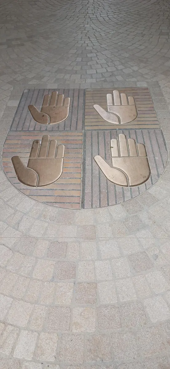 - la 2ème : les 5 doigts de la main représentaient les 5 villages construits autour du Bourg après le passage des Sarrasins et les 4 mains pour les 4 quartiers.
