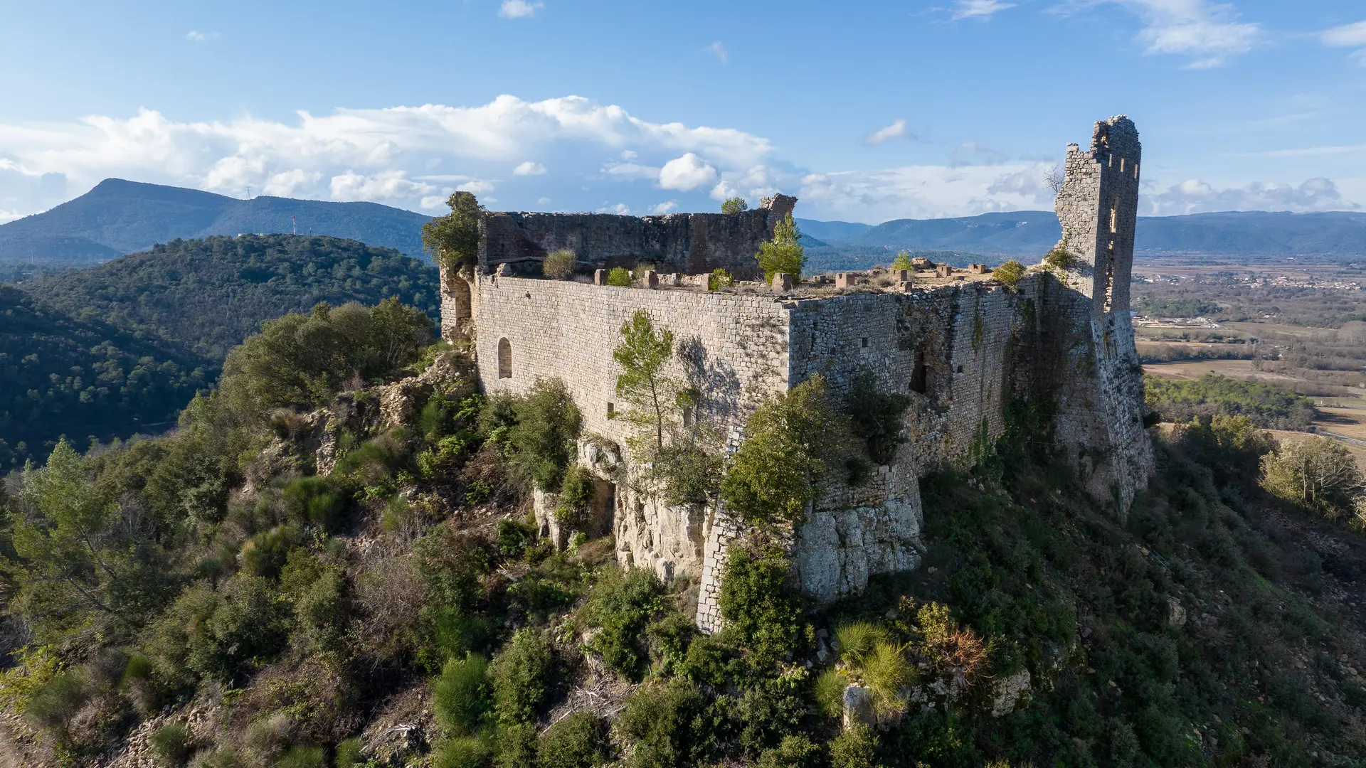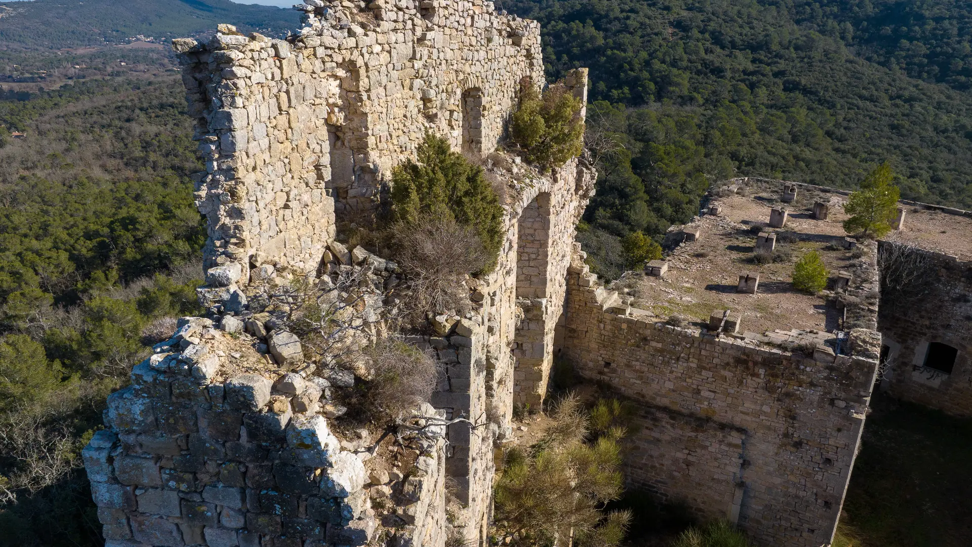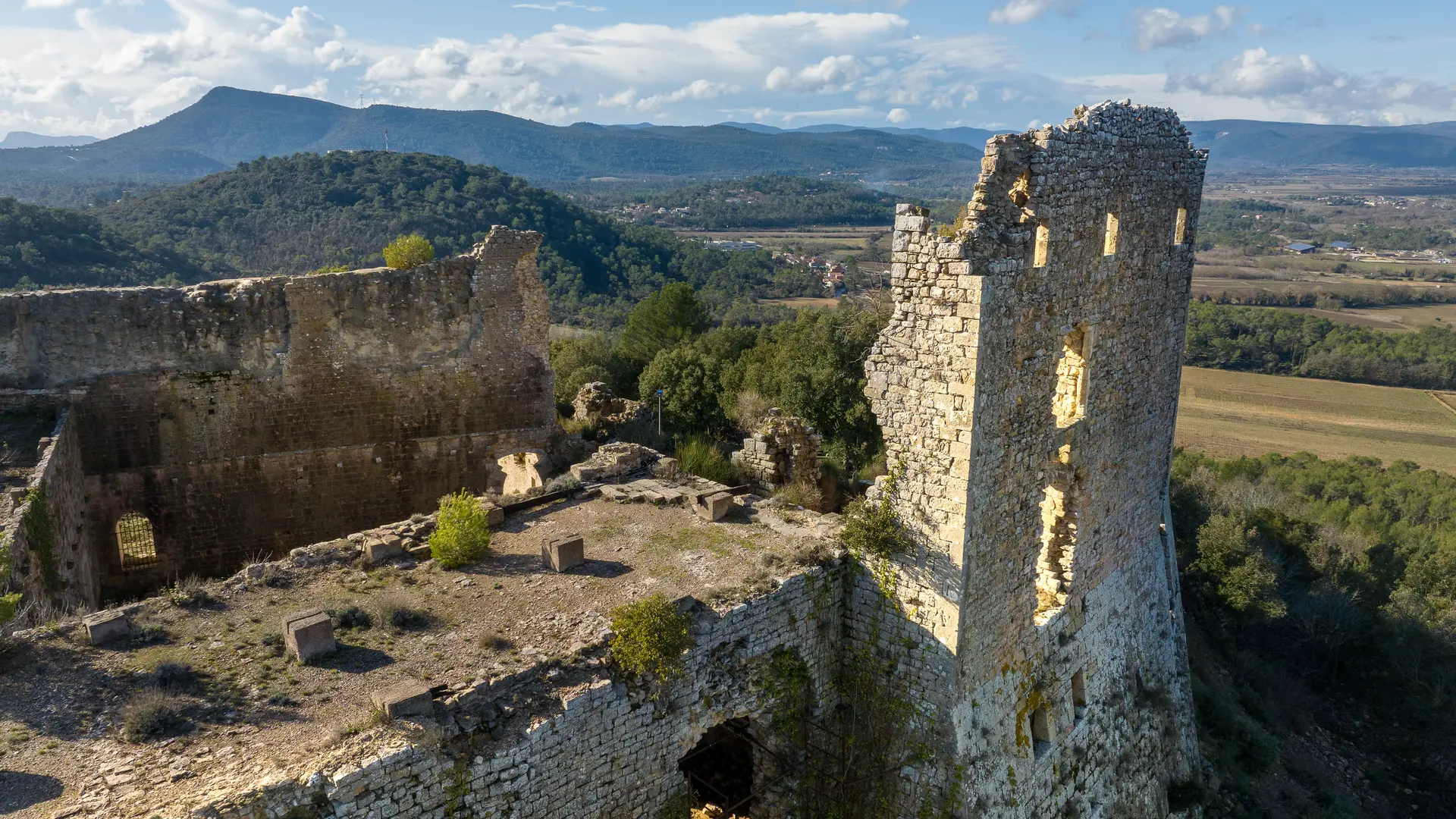 Le sommet du piton est entièrement entouré d'un mur d'enceinte qui renferme le château et le village, un profond fossé (douve sèche) complète le dispositif de défense. Bâti au XIIIème siècle, fortement remanié au XVème siècle, il est abandonné définitivement au cours du XVIIème siècle. Dans l'intervalle, la seigneurie demeure 320 ans dans la famille d'Agoult, puis devient le fief militaire d'Hubert de Vins, chef du parti catholique, pourchassé par les protestants. En 1621, le marquis de Vins abandonne la forteresse. Le château passe à la famille de Pontevès grâce à une alliance en 1781. Début 1900, le dernier des Pontevès vend le château à un riche négociant, Monsieur Dhorsner. Le château devient une carrière de pierre. En 1978, Monsieur Borg, propriétaire suivant, cède la colline du Castellas à la commune, pour le franc symbolique. Le château est alors inscrit à l'inventaire des monuments historiques.