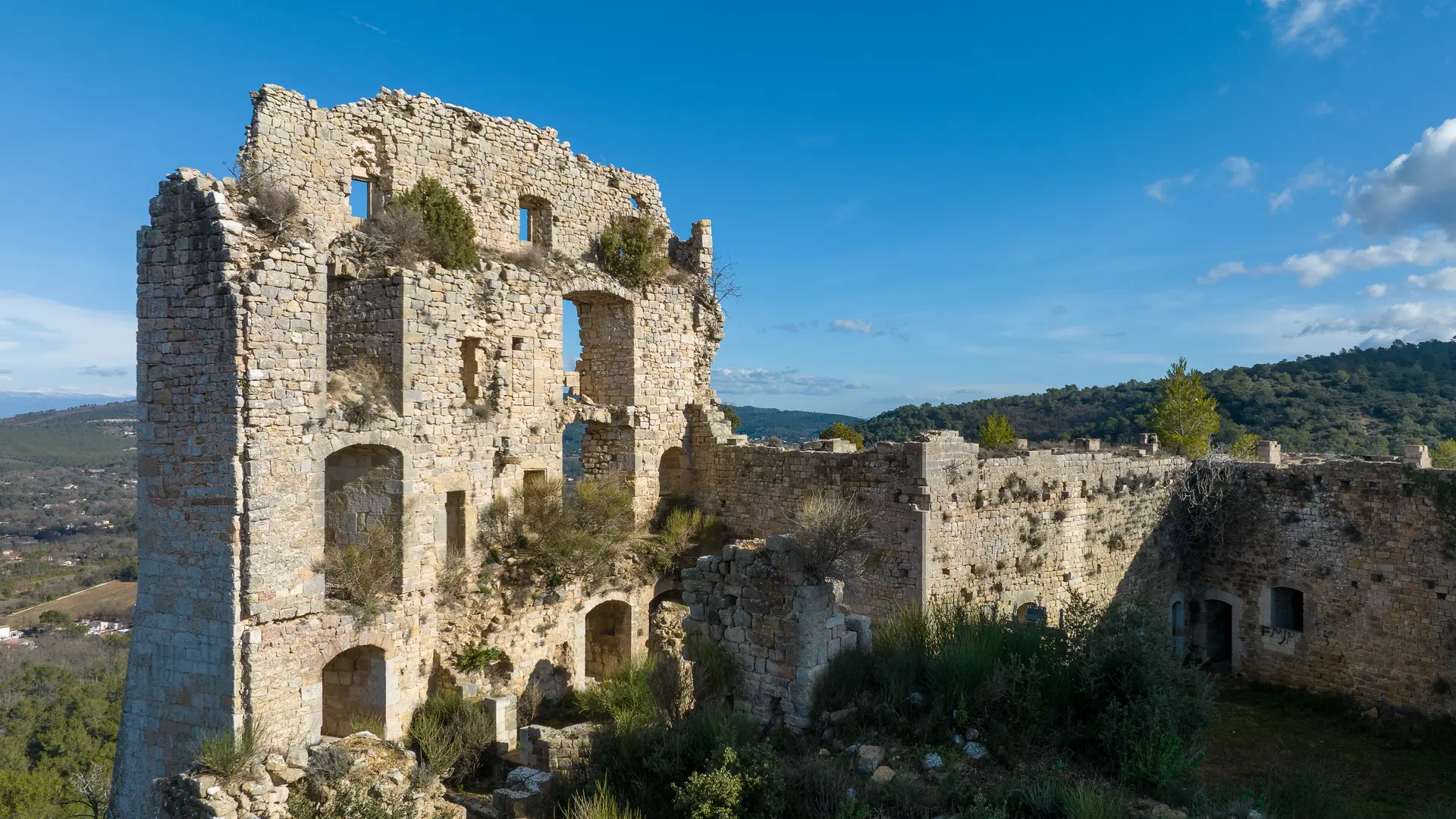 Implanté sur un promontoire, le château fort domine la plaine de 130 mètres environ. C'est l'édifice militaire médiéval le plus important du Var. Visible de l'extérieur et de loin uniquement (risque d'effondrement)