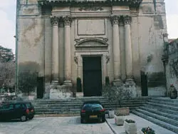 La chapelle en bordure du boulevard des Lices, fut également préservée. Sa façade se compose de deux doubles colonnes à chapiteaux corinthiens qui encadrent le porche. L’ensemble est surmonté d’un large fronton triangulaire, lui-même rehaussé d’un tympan curviligne (martelé à la Révolution), où l’on peut remarquer un cœur percé d’une flèche, au milieu d’une nuée où apparaissent des angelots.