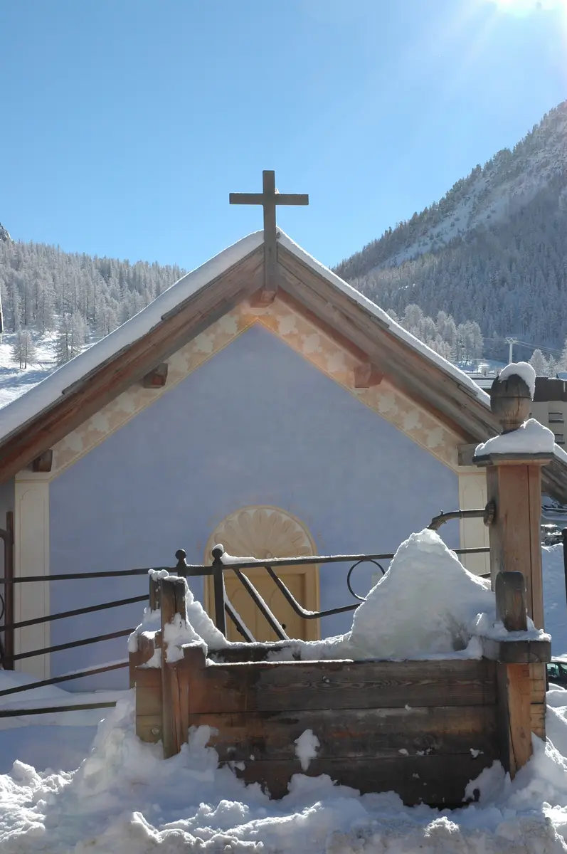 La coquille St Jacques peinte au-dessus de l'entrée rend hommage à St Jacques pour son périple jusqu'à Compostelle (Montgenèvre se trouvant sur l'itinéraire de son pèlerinage).