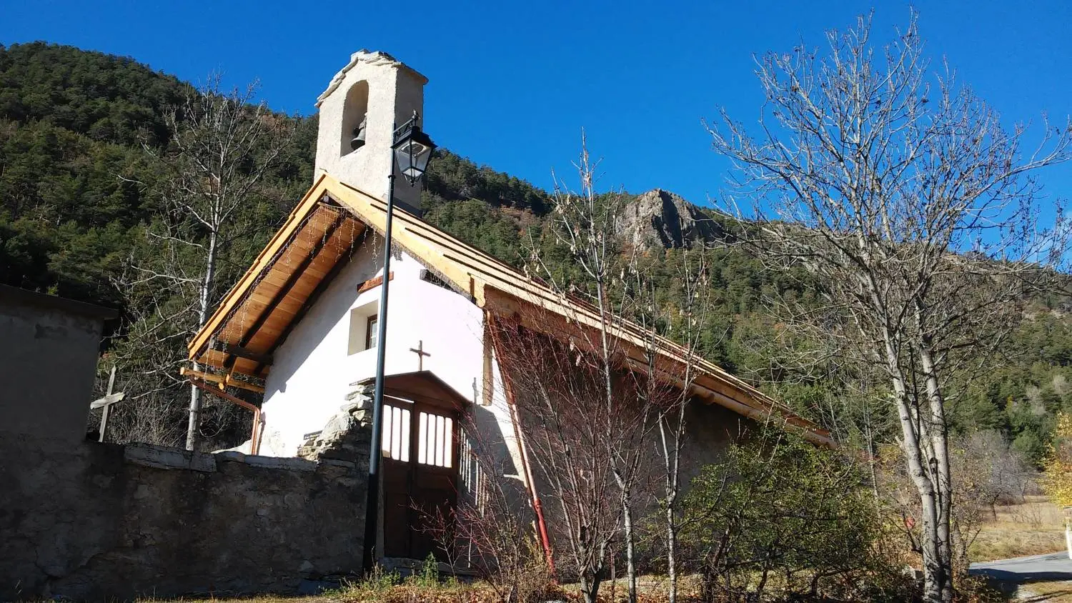 L'intérieur est voûté en plein cintre, le berceau est recouvert de bois.