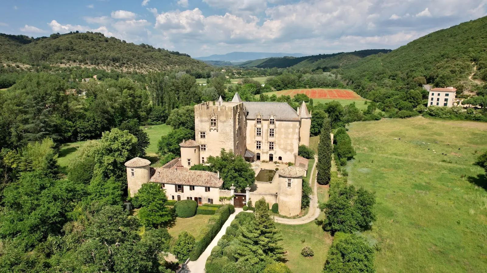 Créneaux, ouvrages de défense, fenêtres à meneaux en 6 parties , monumental escalier à vis, cheminée en gypserie du pays d'Aix, parc. 4 hectares de superbes jardins colorés et un jardin médiéval avec ses plantes médicinales sont à découvrir dans ce magnifique château Renaissance. Construit à l'origine par la famille de Castellane (1218-1718), ce fut la demeure de la famille de Varages (1718-1839), puis de la famille Ripert-Montclar(1839-1936). De nos jours, il est encore habité. Votre guide vous expliquera l'origine du nom d'Allemagne, les différentes batailles et sièges du Château, les complots et les duels tragiques qui s'y sont déroulés, puis comment le château a survécu à la Révolution. Une histoire passionnante qui vous transportera à travers les siècles. Le donjon couronné de créneaux date du XIIIème siècle. Il était à l'époque flanqué de 5 tours de défense, reliées entre elles par une courtine et entouré de douves. A partir de 1495, François de Castellane y joint l'élégante aile renaissance et transforme le donjon de défense en château de résidence. A l'intérieur, un remarquable escalier à vis relie le donjon à l'aile renaissance. Au deuxième niveau, une somptueuse cheminée monumentale en gypserie de 1546, soutenue par deux statues sur pied, orne une des salles d’apparat du Château. Les visiteurs pourront admirer à l'intérieur, comme à l'extérieur, tous les détails architecturaux (plafonds à la française, fenêtres à meneaux en 6 parties, etc...) et découvrir les empreintes des grands siècles qui ont marqué l'Histoire du Château.