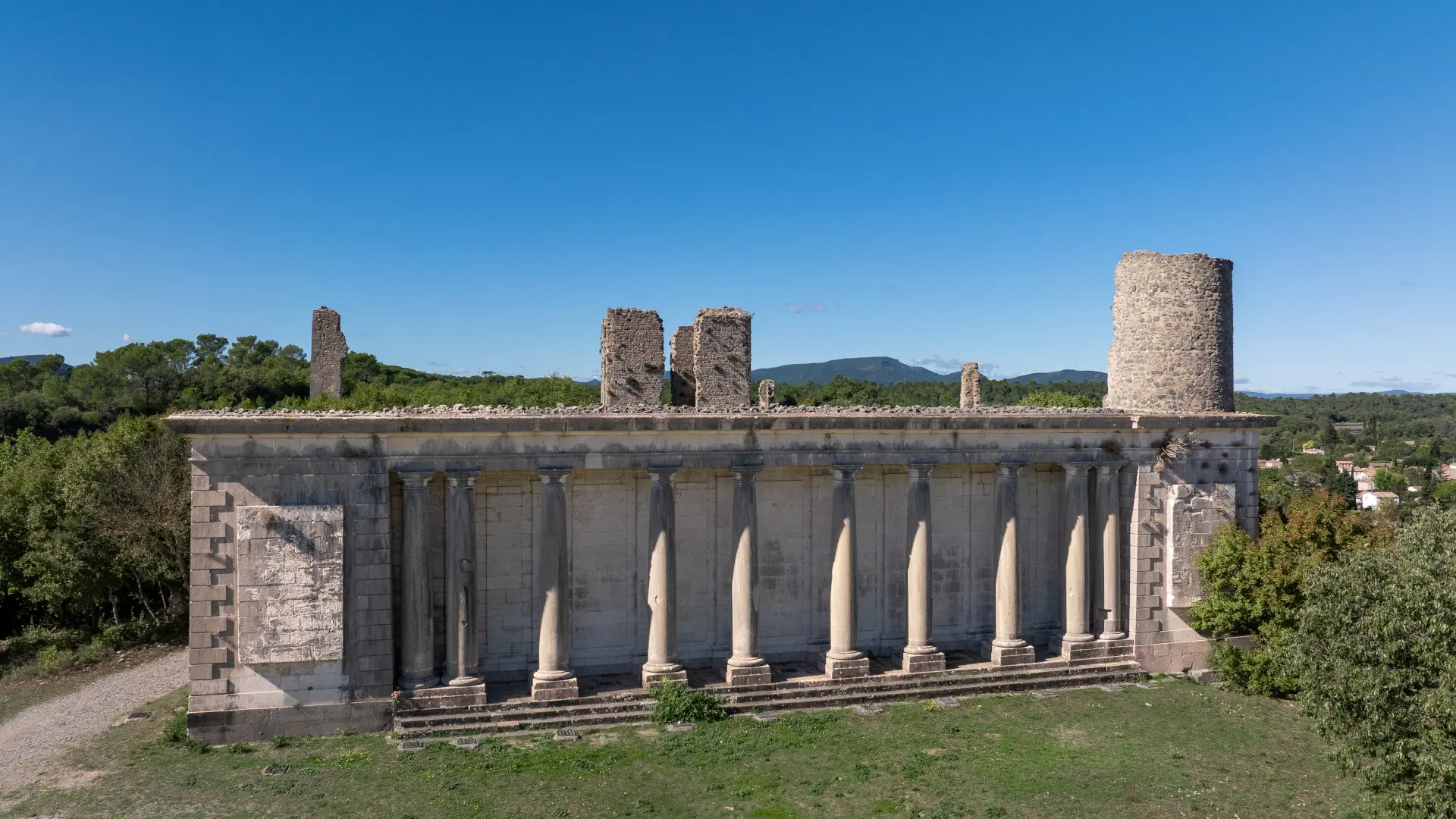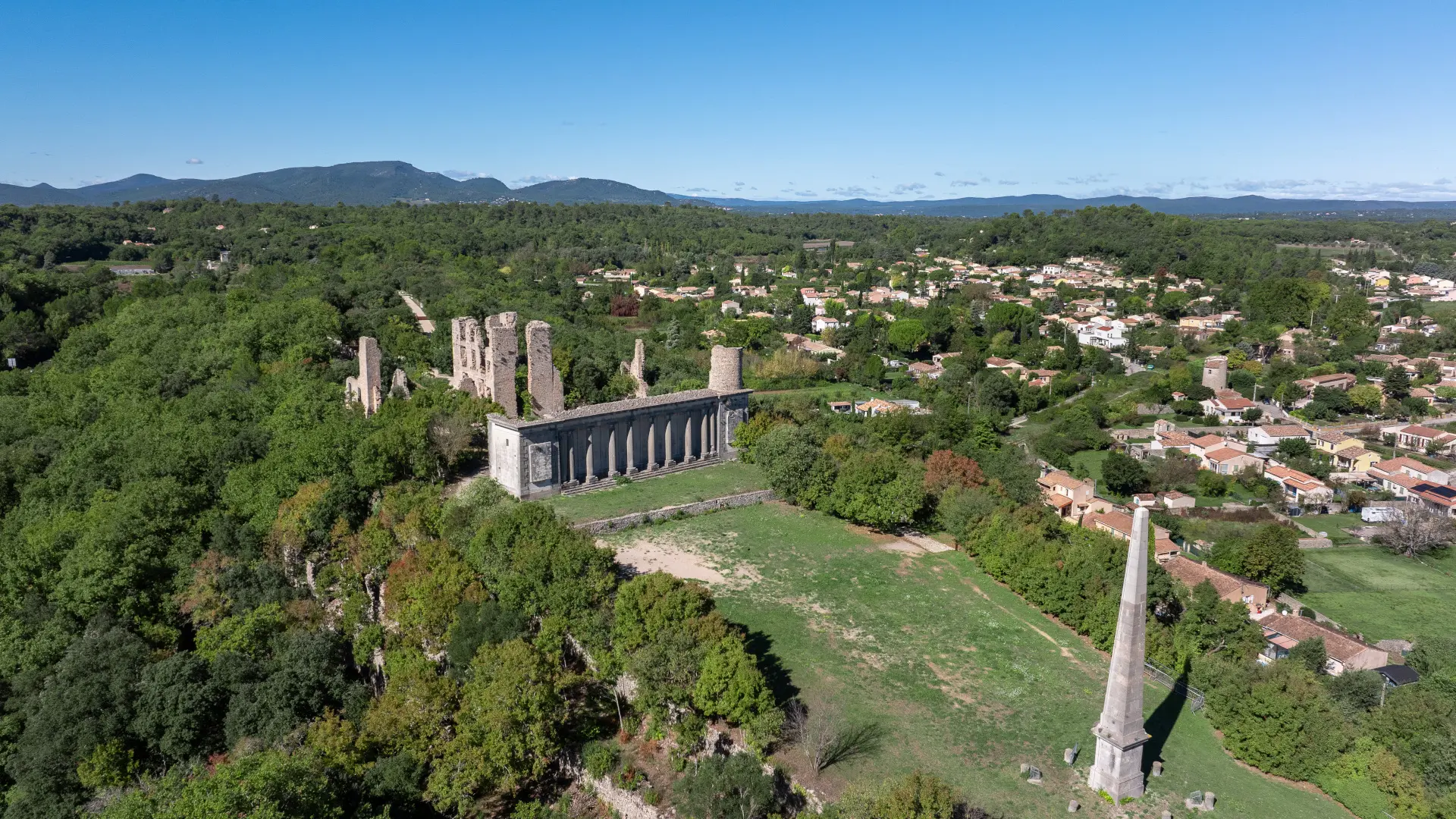 La façade Est fut notamment agrémentée d'une colonnade, d'ordre toscan, et un parc fut créé, destiné à servir de cadre à des fêtes fastueuses, où se retrouvait toute la noblesse provençale. Ce parc, considéré au XVIIIème siècle comme l'un des plus beaux parcs de Provence, est aujourd'hui à l'abandon mais il conserve une puissance onirique très forte par le romantisme que dégage ses ruines. Il s'étendait de part et d'autre du château, sur une colline boisée. Il était planté d'essences rares et était agrémenté par de nombreuses statues (Vénus, Mars...), des fabriques (pyramide, pagode, obélisque), des écuries, un moulin à vent et une oisellerie dont il ne reste aujourd'hui que de rares traces. Il y régnait, en apparence, désordre et arbitraire. Mais l'emplacement des fabriques et des arbustes répondait en fait à une rigoureuse géométrie que seule une lecture en plan permet de repérer.
