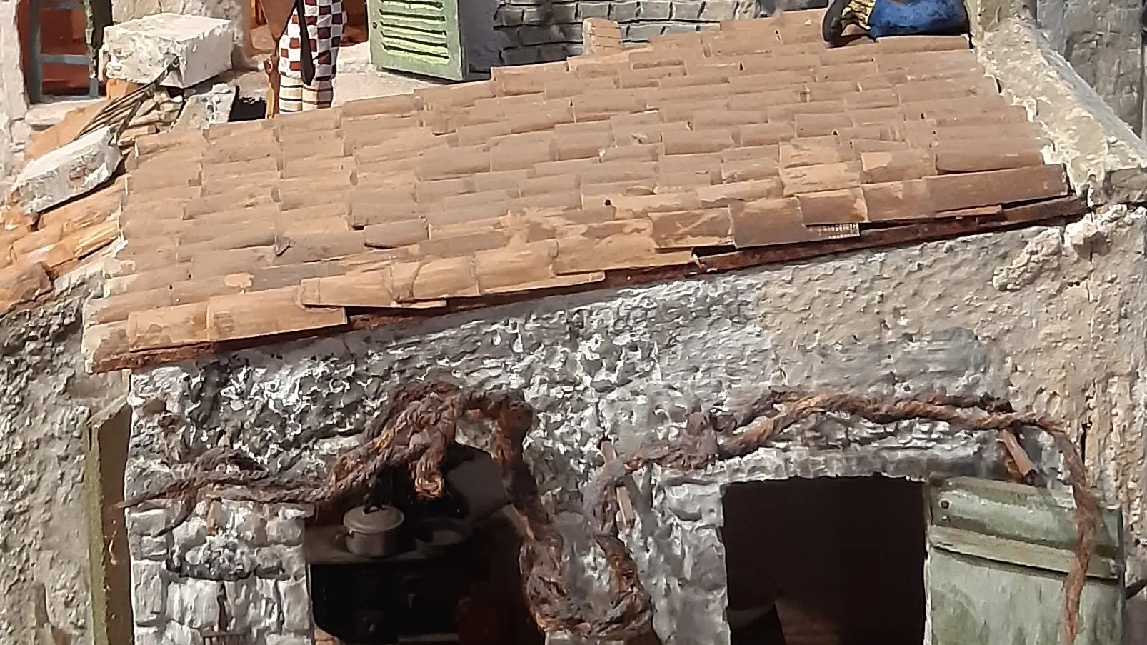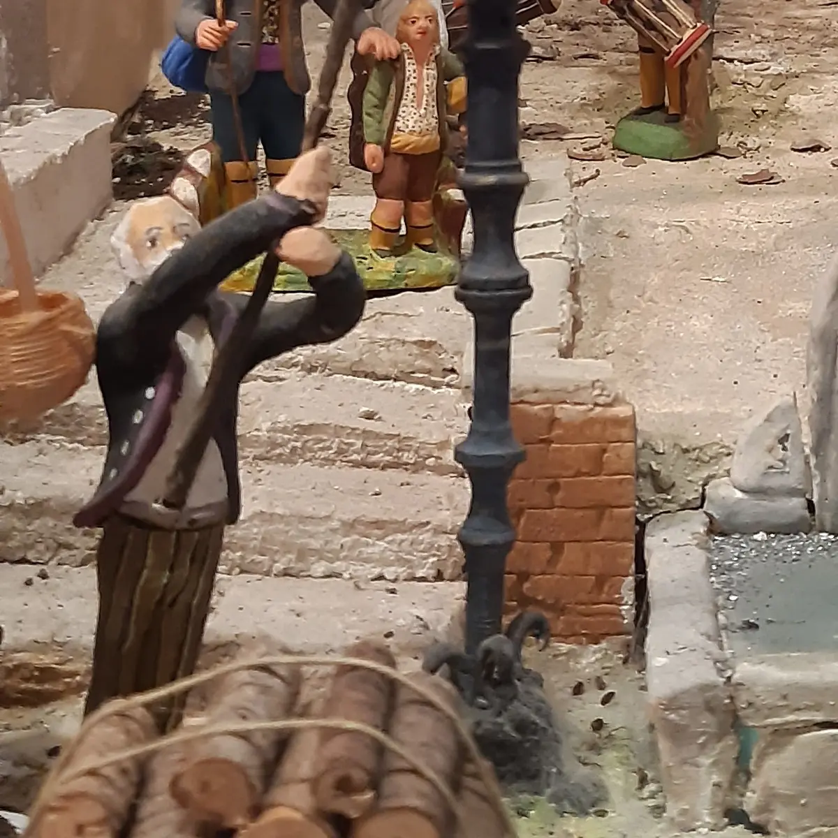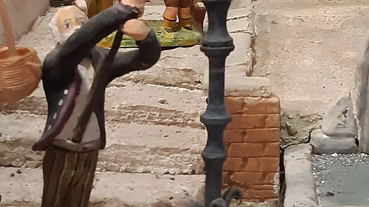 Grand diorama de santons colorés, illustrant une crèche provençale d'influence Napolitaine.