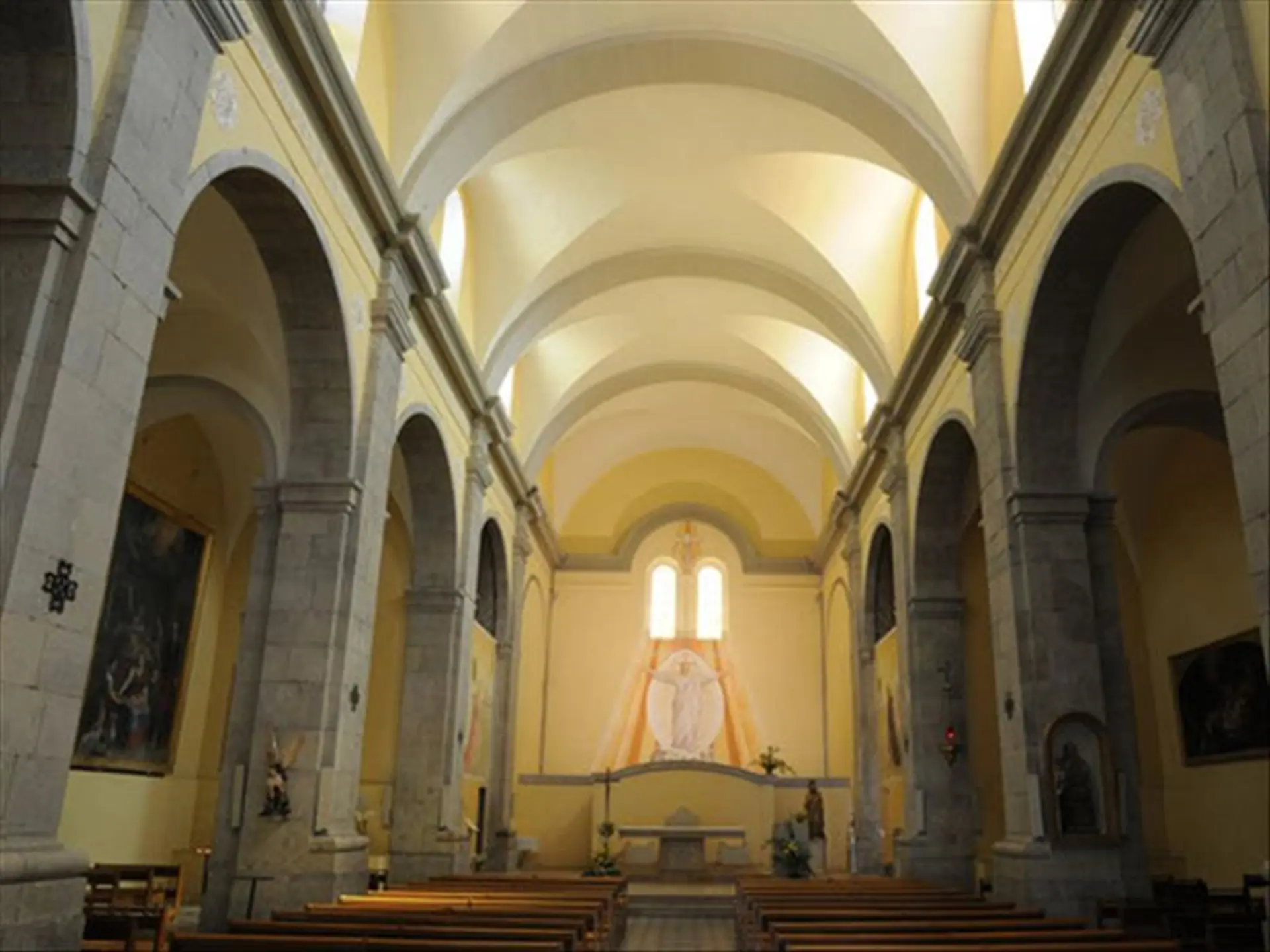 Place PMR à côté de l'église. Rampe d'accèsPlace réservée PMR