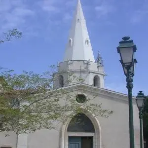 L'église domine le centre ancien et ses cloches rythment les heures, du haut de son grand clocher blanc.