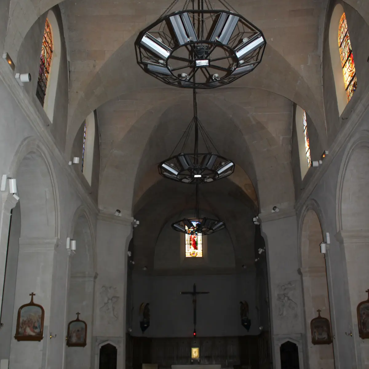 L'église se caractérise par la présence de quatre chapelles latérales donc une utilisée pour une reconstitution de la grotte de Lourdes.