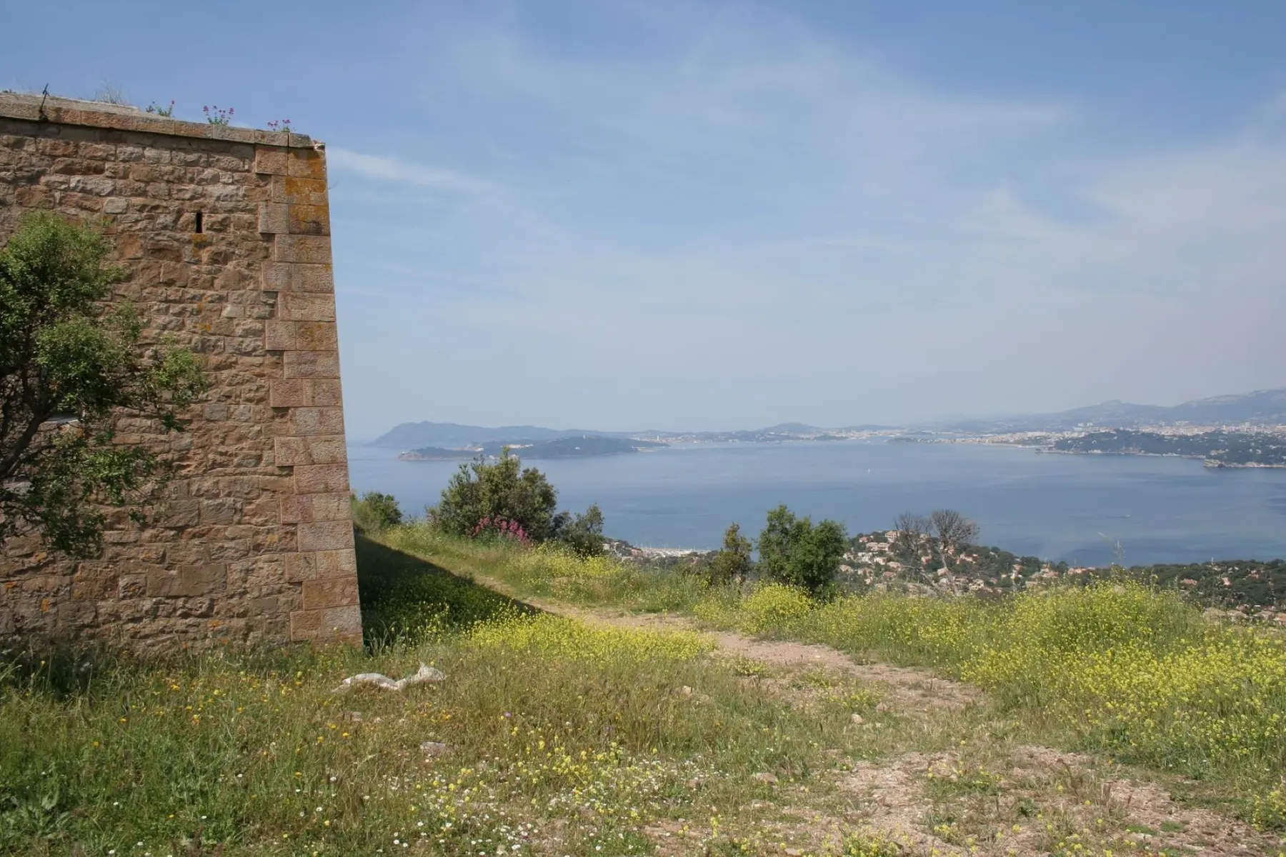 Du sommet de ce fortin, on balaye tout le littoral, avec de l'Est à l'Ouest : Brégancon, Port Cros, Porquerolles, Fort Saint Louis, Fort Saint Agathe, Saint Mandrier, Six Fours, Le mont Faron et le Mont Coudon.