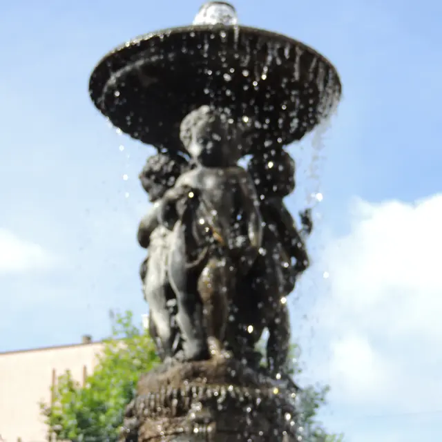 Cette jolie fontaine en fonte et en pierres de taille a été rénovée en 2012 et déplacée pour faciliter la circulation routière. Elle se compose d’une magnifique double vasque qui encadre des enfants.