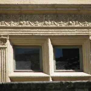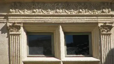 On peut apercevoir dans la cour d'honneur (derrière la porte principale), les fenêtres à meneau encadrées de pilastres, et ornées de différentes motifs représentant les quatre saisons.