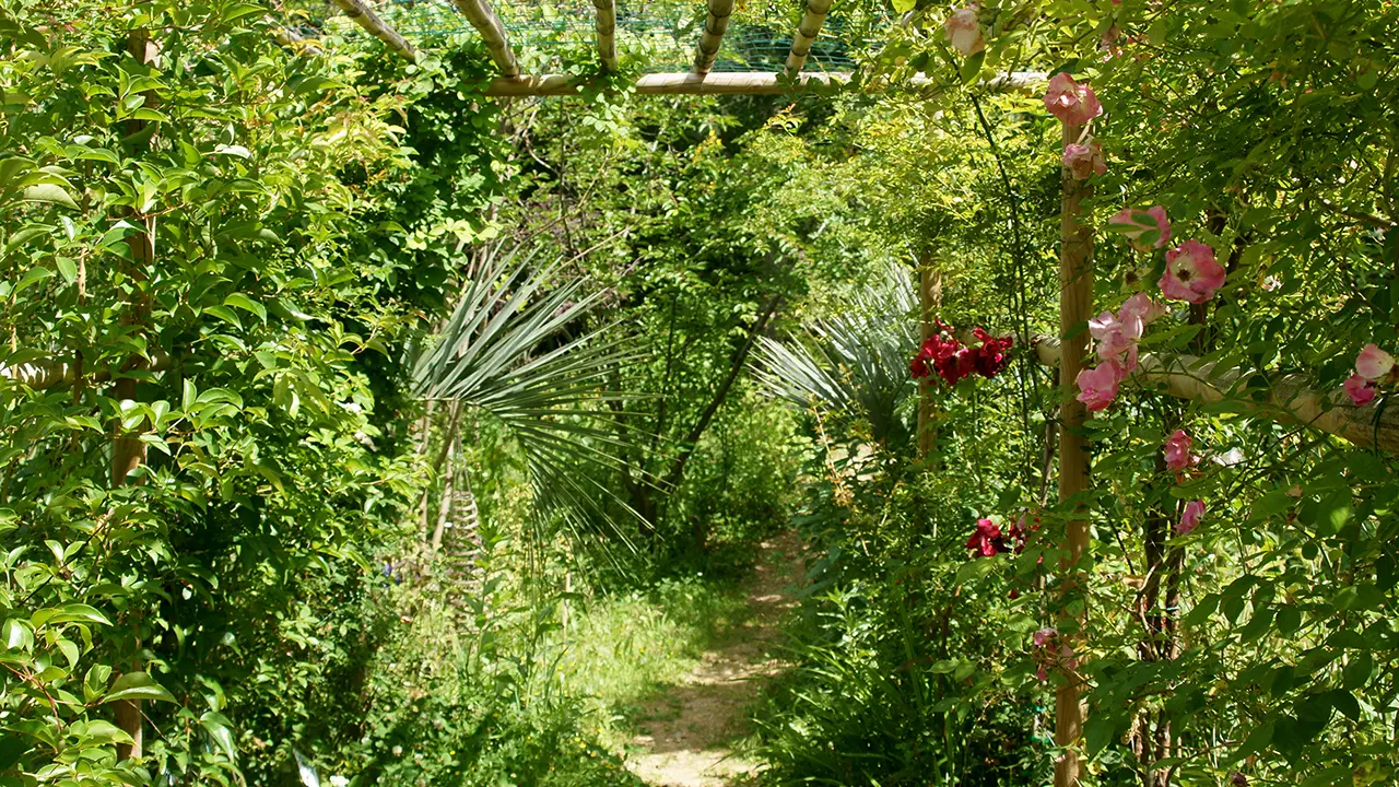 Le Jardin du Réal abrite une diversité impressionnante de plantes et d’arbres. Le jardin bénéficie d’une végétation locale préservée, en plus des plantes provenant des quatre coins du monde : des variétés issues des Amériques, d’Asie, d’Australie et des régions méditerranéennes européennes enrichissent cet espace unique. Grâce aussi à un sol neutre à acide et un accès à l’eau par un canal d’arrosage, une grande variété de végétaux a pu s’épanouir, créant une véritable canopée après une dizaine d’années de croissance. Cette ombre filtrée permet aujourd’hui d’accueillir des plantes (semi) tropicales ainsi que des espèces venues de régions plus fraîches. Un bassin naturel ajoute une touche aquatique, mettant en valeur des lotus remarquables, des nénuphars et une faune piscicole.