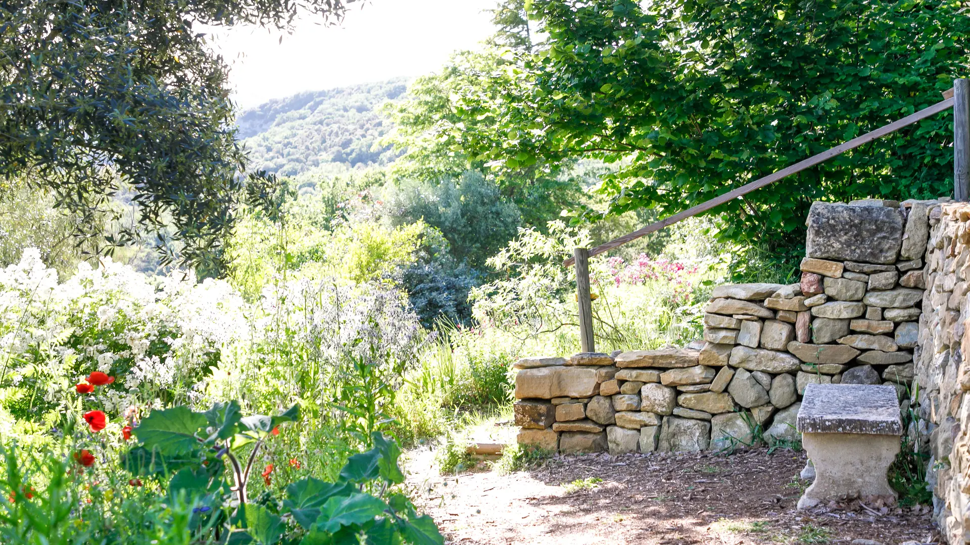 Aux confins du Vaucluse et des Alpes de Haute Provence, non loin du village médiéval de Simiane la Rotonde, le jardin de l'Abbaye cistercienne de Valsaintes est une découverte inattendue.