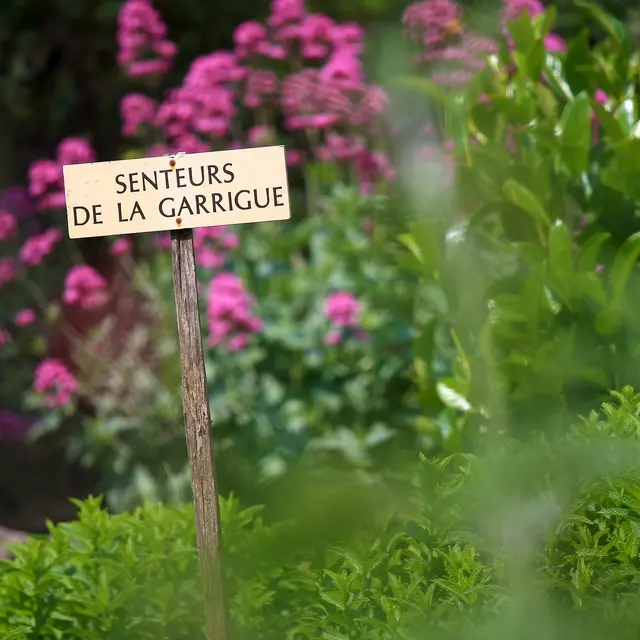 Promenade botanique dans les vestiges du Château parmi 300 variétés de plantes aromatiques.