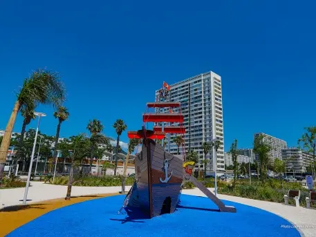 Cet espace de détente de 3 400 m², situé en face du stade nautique du Port Marchand, comprend un jeu d’enfants en forme de bateau, une terrasse en front de mer, un espace de pique-nique et une promenade le long du littoral.