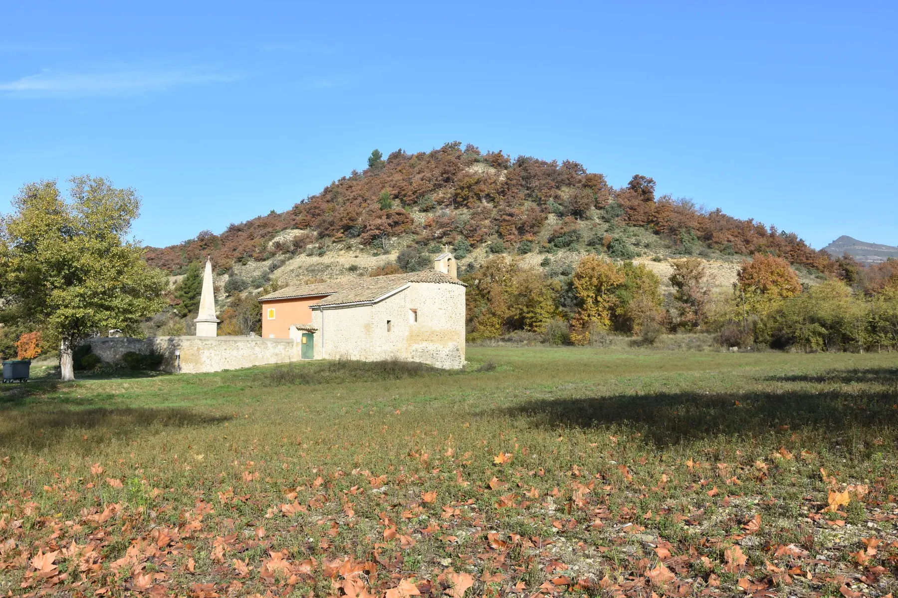 Cette chapelle remonterait au XIe s. Elle est dédiée à St-Christophe, patron des voyageurs. Construite sur un site antique correspondant aux ruines d’une ancienne villa gallo-romaine, vous pourrez lire l’heure sur le cadran solaire qui orne la façade sud.