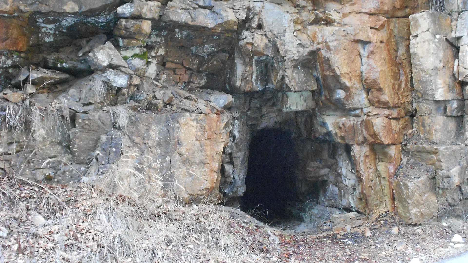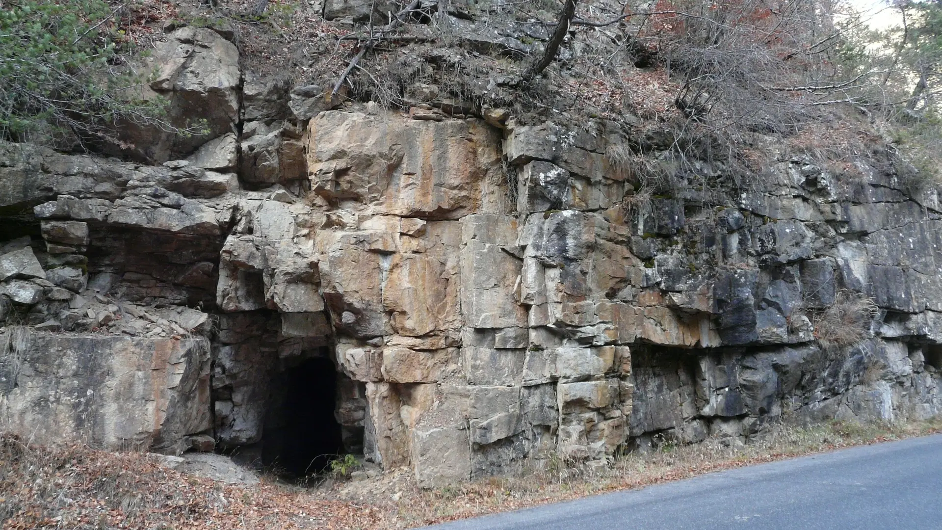 Dans des roches qui sont parmi les plus anciennes du territoire, les quartzites du Trias, on trouve une cavité qui s’ouvre sur le bas-côté de la route ; il s’agit d’une ancienne galerie de mine de galène.