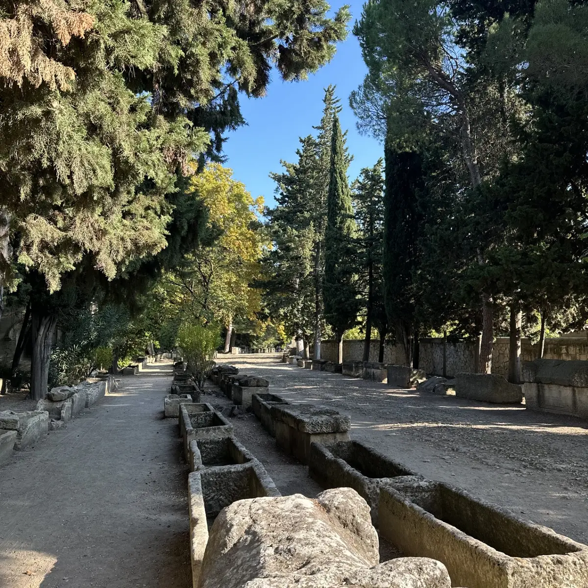 Avec Luma Arles et la Tour moderne de Frank Gehry qui apparaissent en fond, les Alyscamps sont un témoignage du lien entre le passé et le présent, un lieu où l'histoire, l'art et la nature se fondent harmonieusement. Visiter ce site, c'est plonger dans une expérience unique, où l'âme du lieu se révèle à ceux qui prennent le temps de l'explorer.