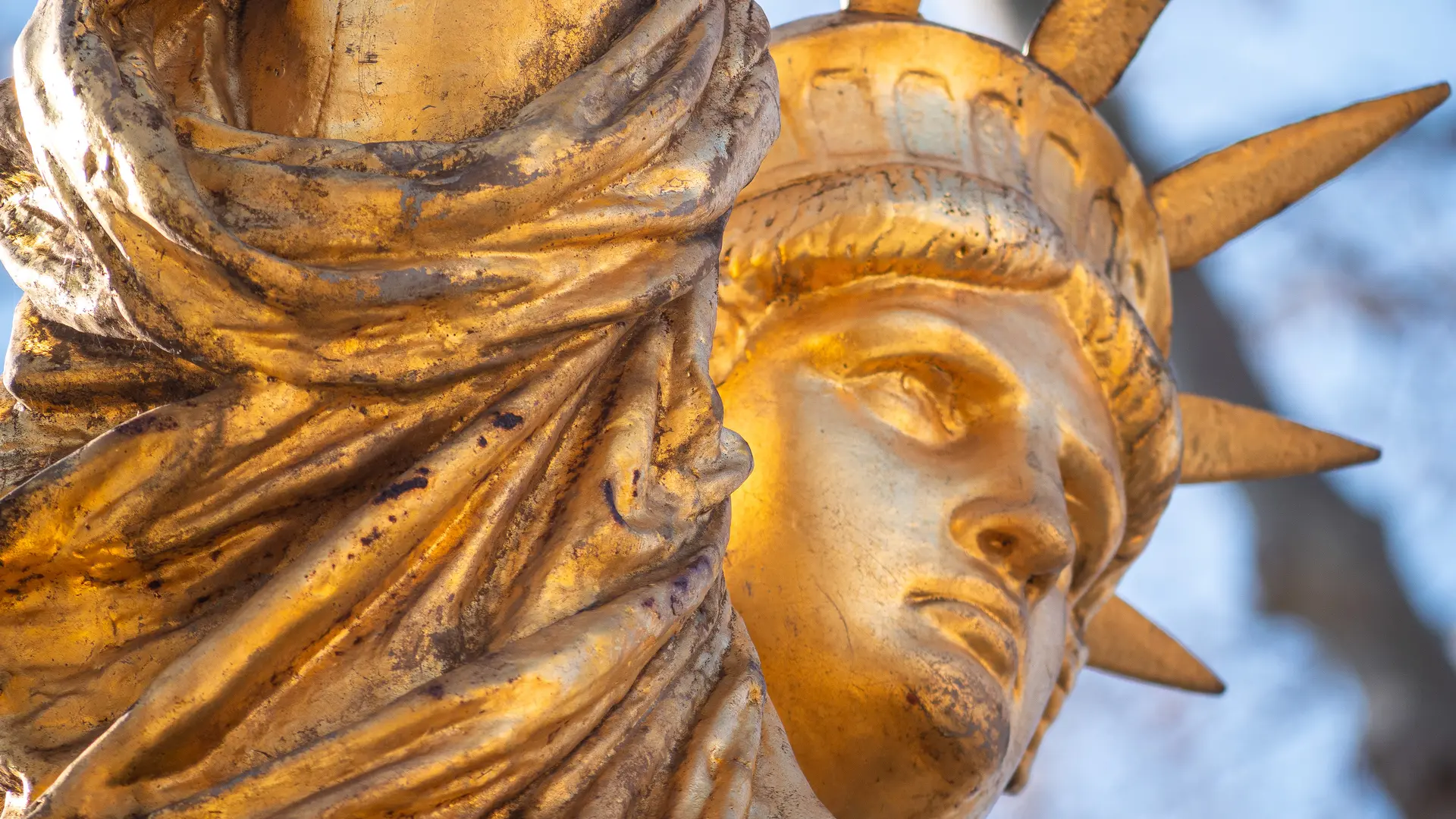 Elle est entièrement en fonte et recouverte d'une fine couche dorée.
