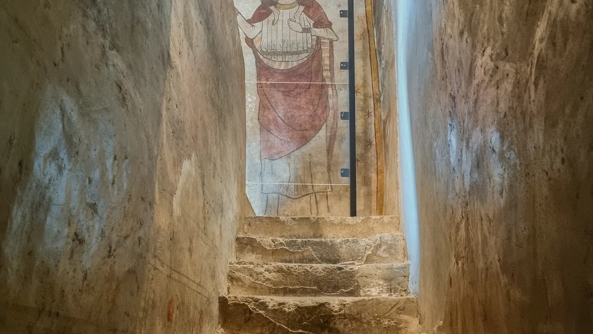 Bâtiment du XIIème siècle avec 60 marches pour accéder aux fresques.
